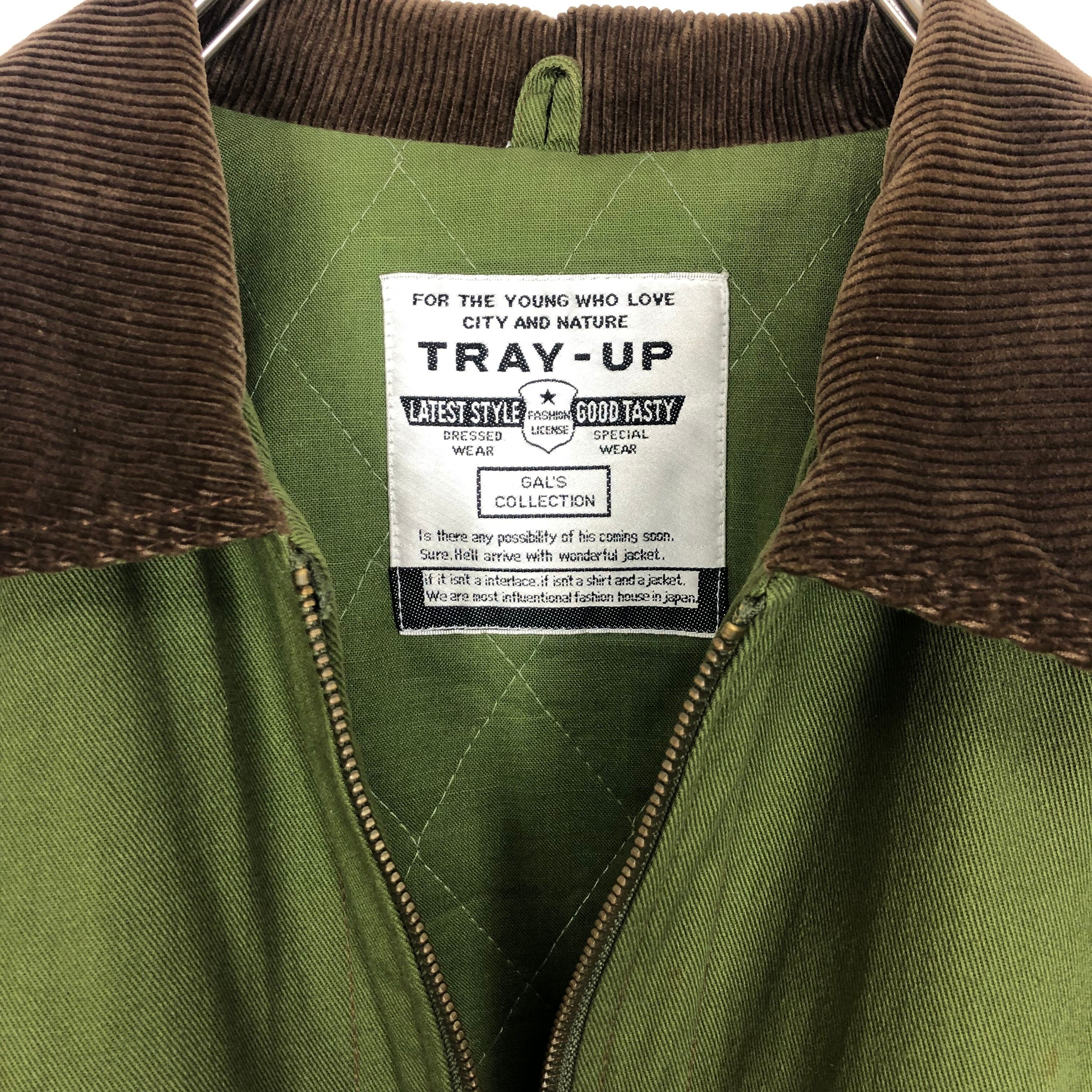 襟、袖、フロントポケットのコーデュロイ生地がアクセントになっていてグリーンとブラウンの配色が絶妙なアイテムです、是非。