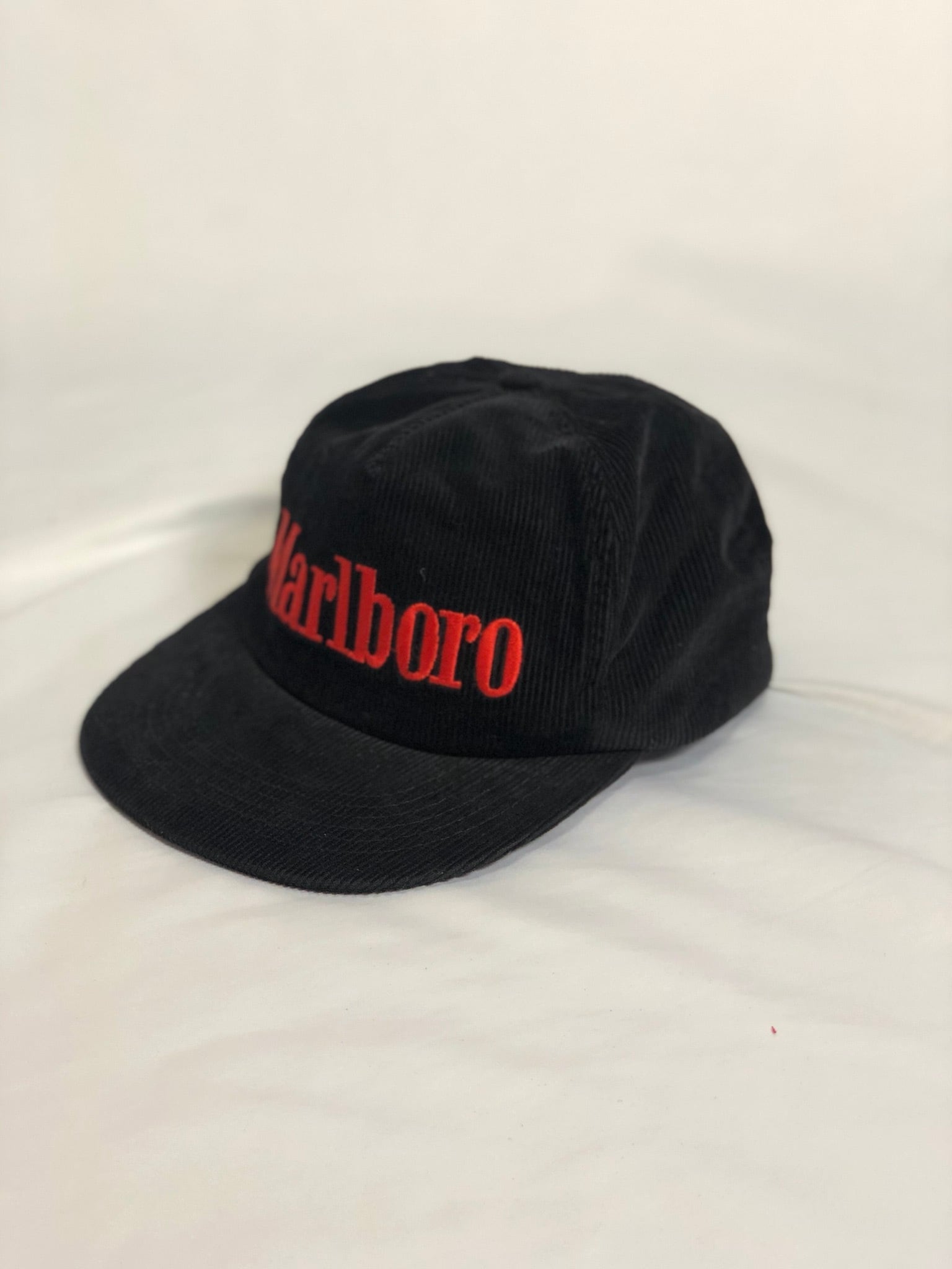 希少な年代物のマルボロの刺繍ロゴ入りコーデュロイキャップ。